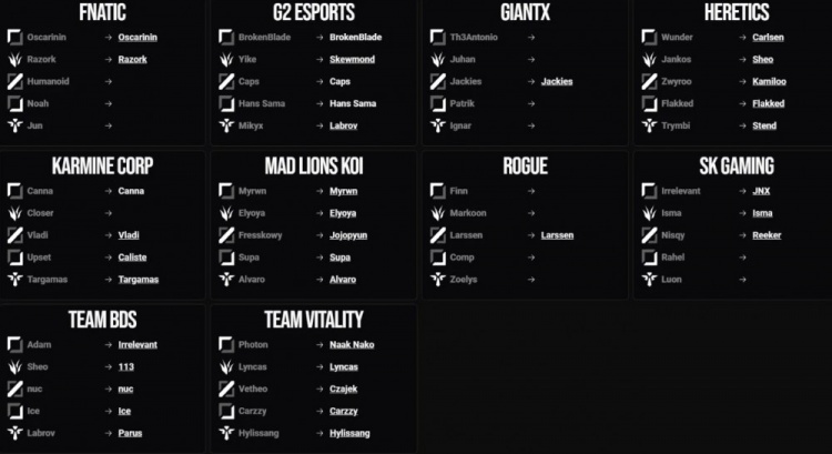 10月22日宣 外媒Sheep Esports总结了一份根据他们的消息来源目前LEC各队可以确定的下赛季人员名单。