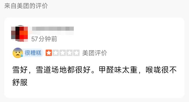 除了配套没完全建好,新装修的“味道”也成了不少人吐槽的点。在社交平台上,关于华发冰雪世界“甲醛味道大”的讨论热度也不小。有网友吐槽“味道大到有点冲”,“建议大家买厚一些的口罩来”;不过也有部分常玩雪的人觉得,味道没那么夸张,“能接受,不算刺鼻”,不同感受还引发了小范围讨论。