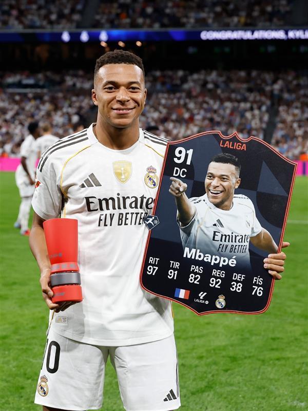 西甲第8轮,皇家马德里主场对阵比利亚雷亚尔,赛前,皇马前锋姆巴佩领取了西甲9月最佳球员奖。