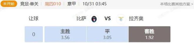 现在他们的目标是本赛季首次在意甲联赛中取得连胜,以两队近期状态来看,有一定难度,指数也在示好比萨,但倾向过于明显,或许是个引诱,看好拉齐奥赢球希望更大。