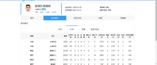 截止中超29轮,路易斯共代表申花出场22次,累计打进9球,送出2记助攻。
