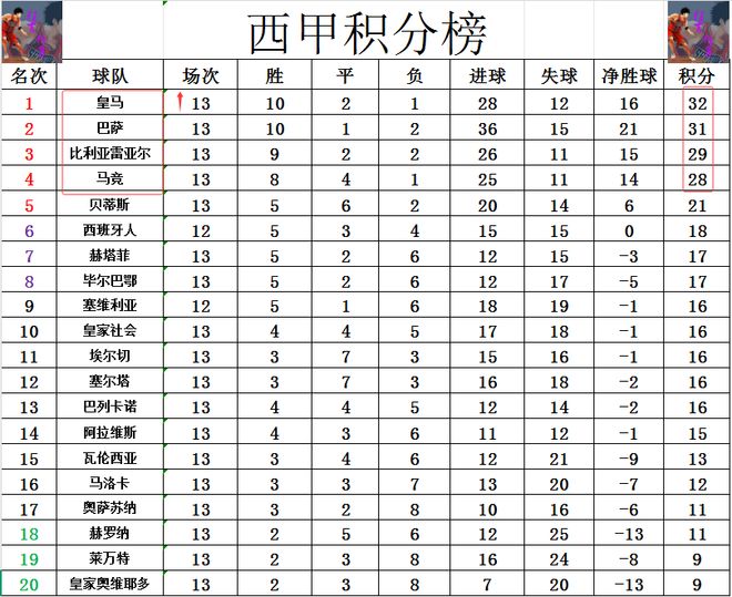 北京时间11月24日凌晨,2025-26赛季西甲联赛第13轮再赛4场。经过一番鏖战,皇家奥维耶多主场0:0闷平巴列卡诺,马竞客场1:0小胜赫塔菲,皇家贝蒂斯主场1:1战平赫罗纳,皇马客场2:2绝平埃尔切。